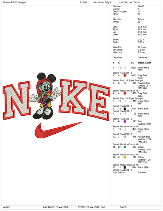 Archivos de bordado divertidos de Nike Minnie Mouse para cosplay (3 tamaños)