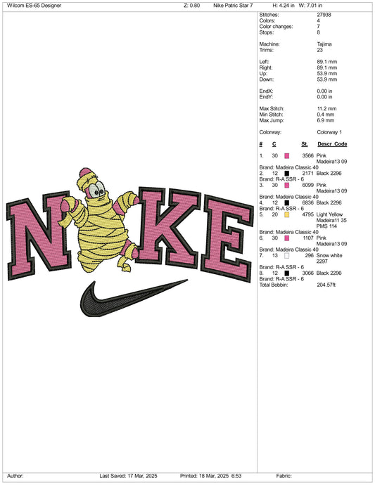 Archivos de bordado Nike Patrick Star Mummy (3 tamaños)