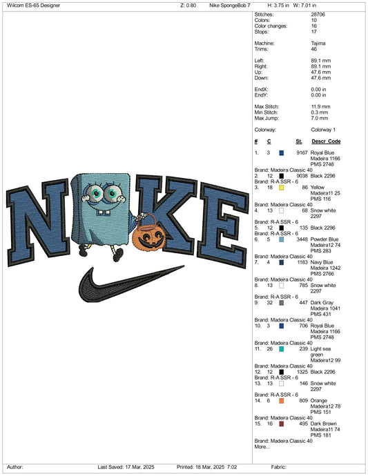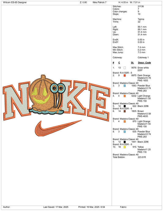 Archivos de bordado Nike de Bob Esponja para Halloween (3 tamaños)