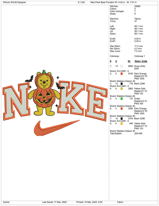 Archivos de bordado de calabaza de cosplay de Pooh de Nike (3 tamaños)