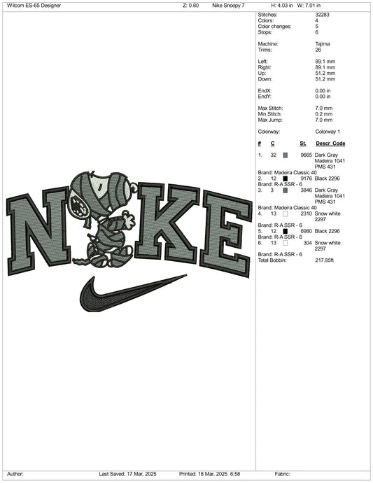 Archivos de bordado Nike Mummy Snoopy (3 tamaños)