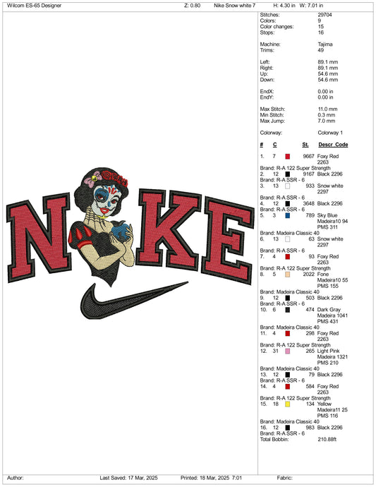 Archivos de bordado de Nike para cosplay de Blancanieves y los siete enanitos (3 tamaños)