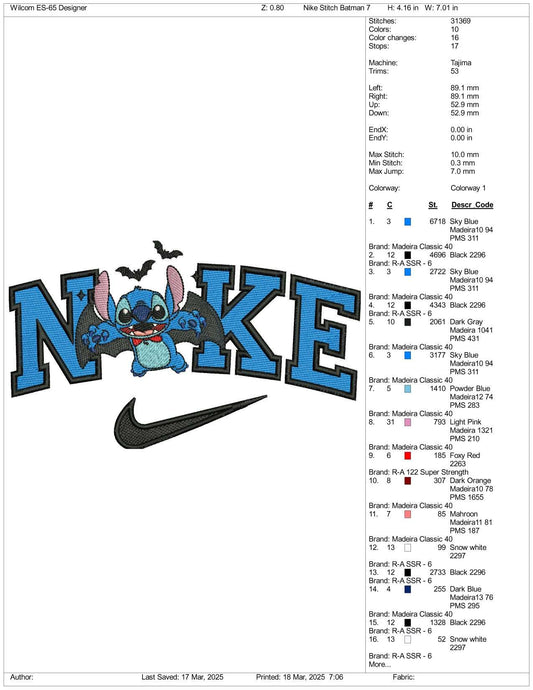 Archivos de bordado de Nike Stitch para cosplay de vampiros (3 tamaños)
