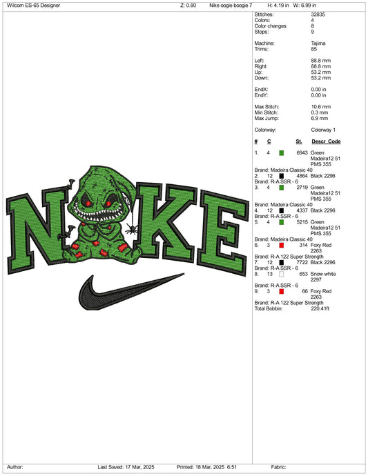 Archivos de bordado Nike Oogie Boogie Man - 3 tamaños