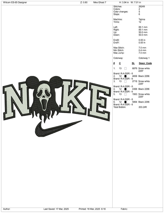 Archivos de bordado Nike Mickey Mouse Ghost (3 tamaños)
