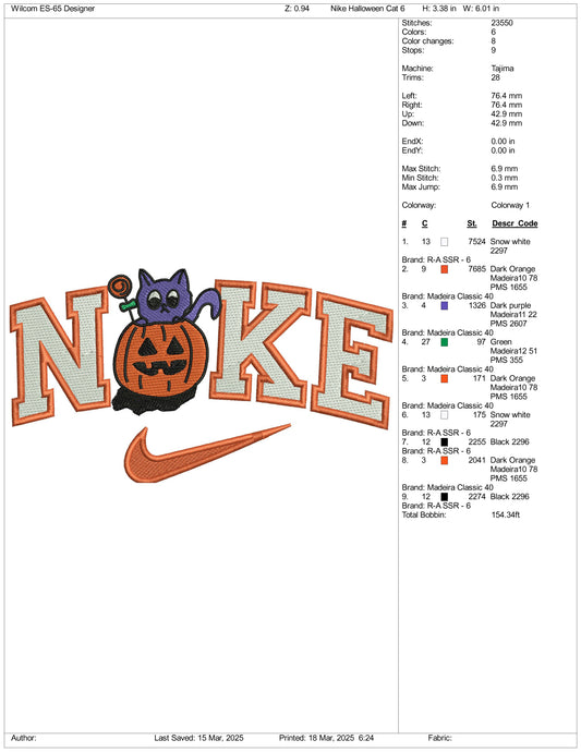 Archivos de bordado Nike Halloween Kitty (3 tamaños)
