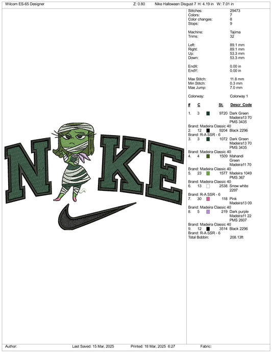 Archivos de bordado Nike Halloween Disgust (3 tamaños)