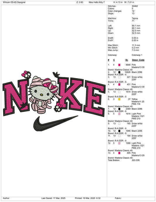 Archivos de bordado Nike Kitty Witch (3 tamaños)
