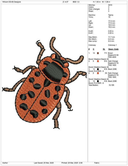 Archivos de diseño de bordado de Ladybug v2 - 3 tamaños