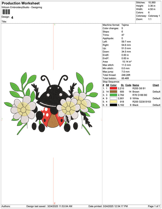 Floral Ladybug Embroidery Design Files - 9 Size's