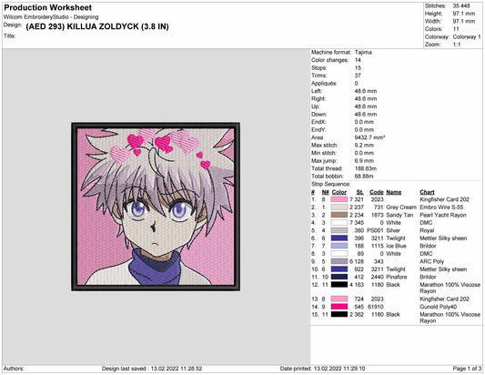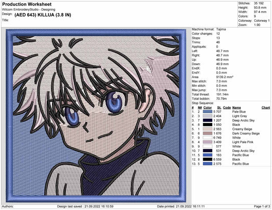 Killua Zoldyck v4 Embroidery Design Files - 5 Size's