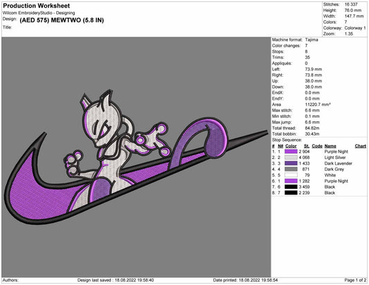 Mewtwo Swoosh Embroidery Design Files - 4 Size's