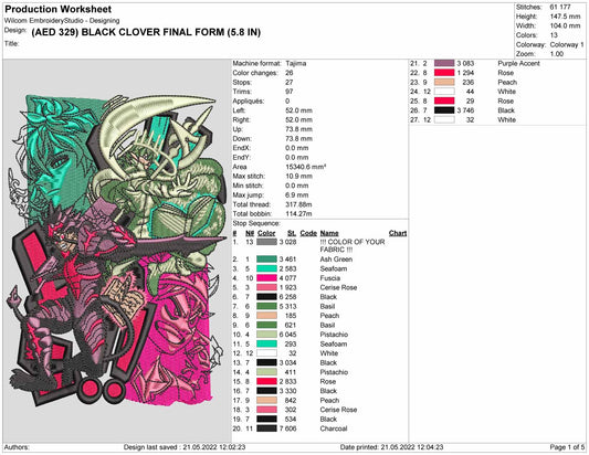 Black Clover Final Form Embroidery Design Files - 4 Size's