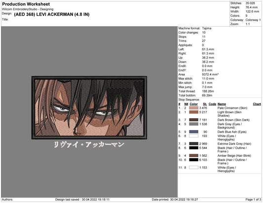 Levi Ackerman v3 Embroidery Design Files - 4 Size's