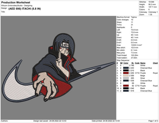 Itachi Uchiha Swoosh v5 Embroidery Design Files - 4 Size"s