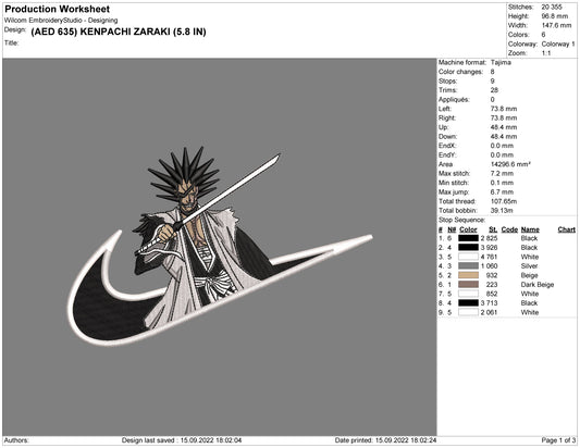 Kenpachi Zaraki Embroidery Design Files - 4 Size's