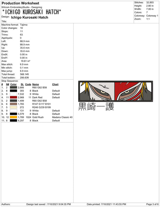 Ichigo Kurosaki v4 Embroidery Design Files - 4 Size's