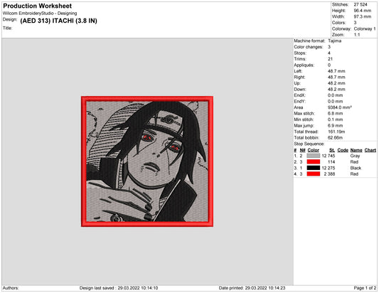 Itachi Uchiha v5 Embroidery Design Files - 4 Size's