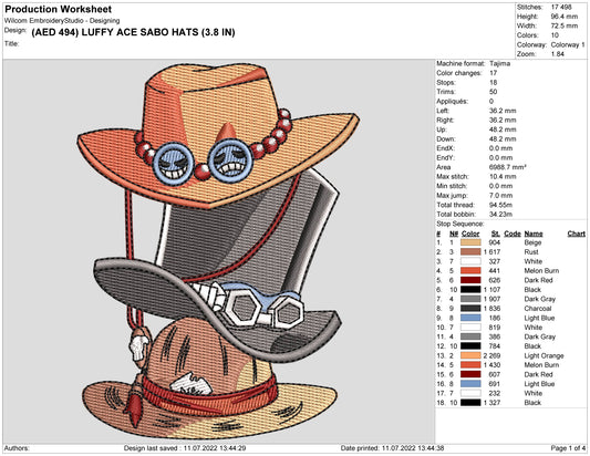 Luffy Ace Sabo Hats Embroidery Design Files - 4 Size's