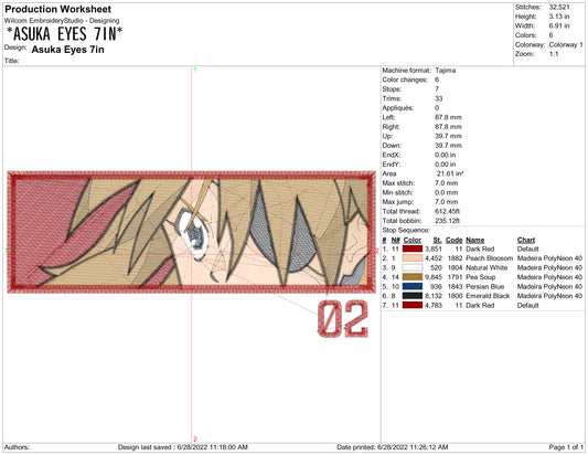 Asuka Langley Soryu Eyes Embroidery Design Files - 3 Size's