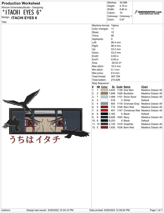 Itachi Uchiha Eyes v2 Swoosh Embroidery Design Files - 4 Sizes