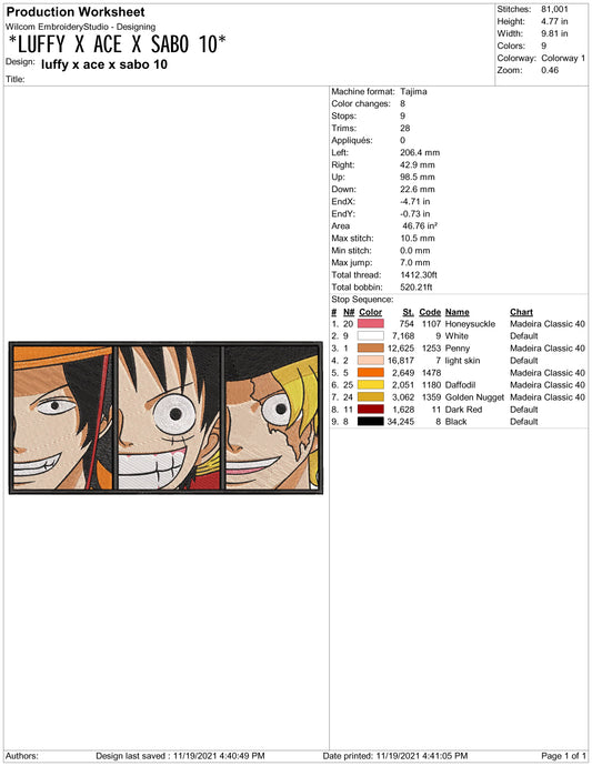 Ace Luffy Sabo Face Half Embroidery Design Files - 1 Size