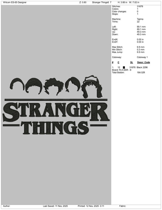 Stranger Things v2 Embroidery Design Files - 5 Size's