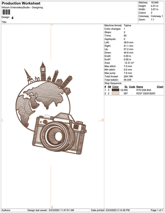 Travel Through the Camera Embroidery Design Files - 9 Size's