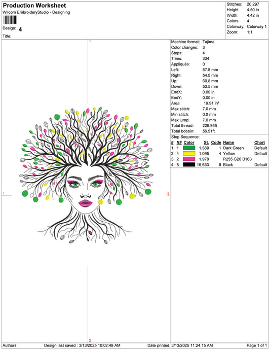 Tree Hair Face Embroidery Design Files - 7 Size's