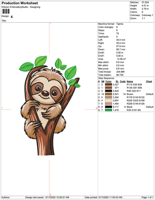 Tree Hugger Sloth Embroidery Design Files - 9 Size's