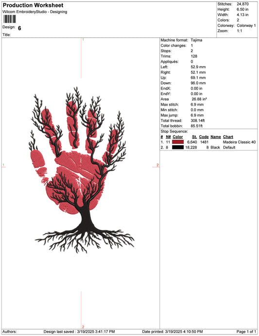 Tree of Life Handprint Embroidery Design Files - 9 Size's
