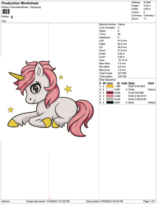 Baby Unicorn Embroidery Design Files - 9 Size's