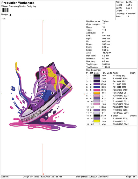 Splash Sneakers Embroidery Design Files - 9 Size's