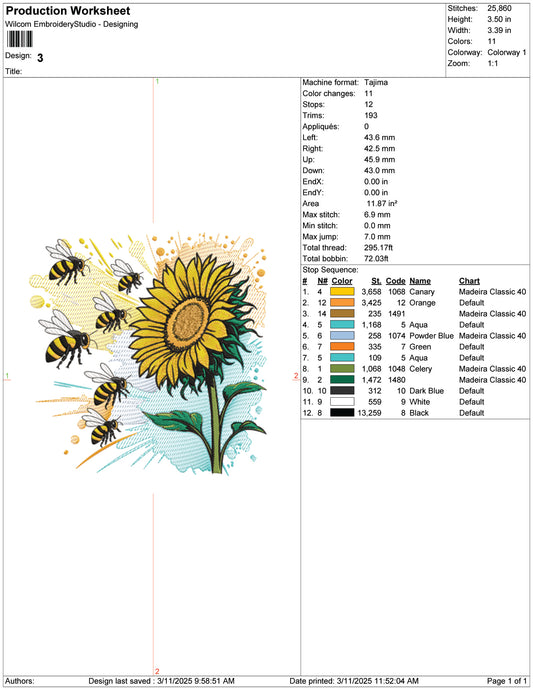 Sunflower Bee Embroidery Design Files - 9 Size's