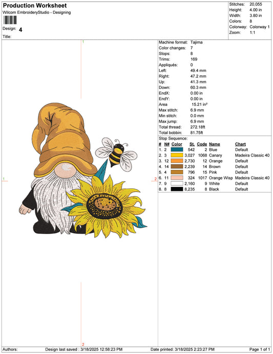 Sunny Days Gnome and Bee Embroidery Design Files - 9 Size's