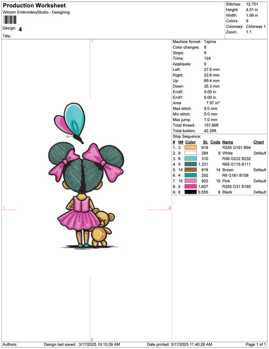 Teddy Bear Girl Embroidery Design Files - 9 Size's