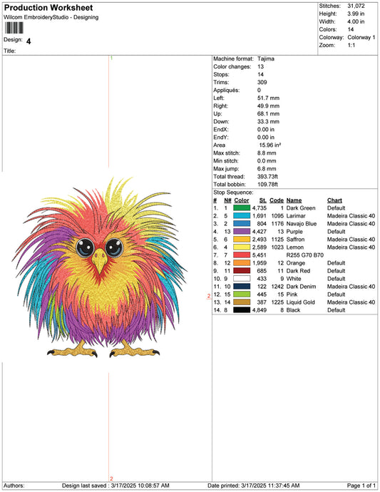 Rainbow Fluff Owl Embroidery Design Files - 9 Size's