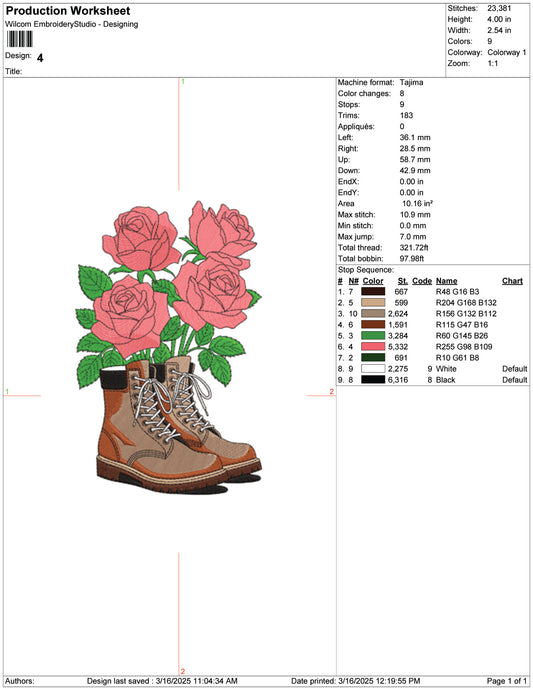 Roses in Work Boots Embroidery Design Files - 9 Size's