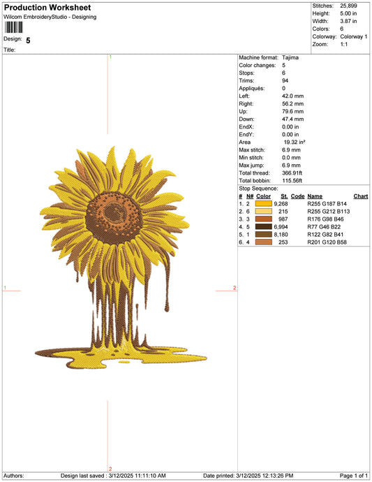 Melting Sunflower Embroidery Design Files - 9 Size's