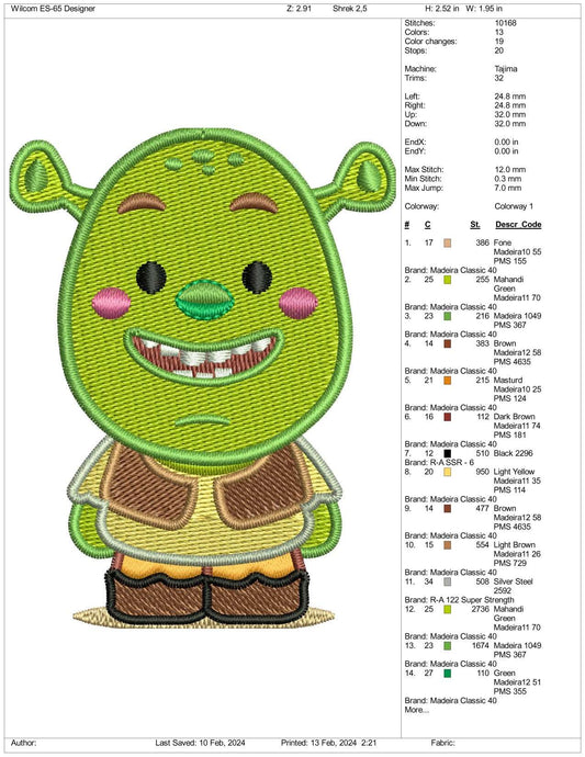Archivos de diseño de bordado de Chibi Shrek - 3 tamaños