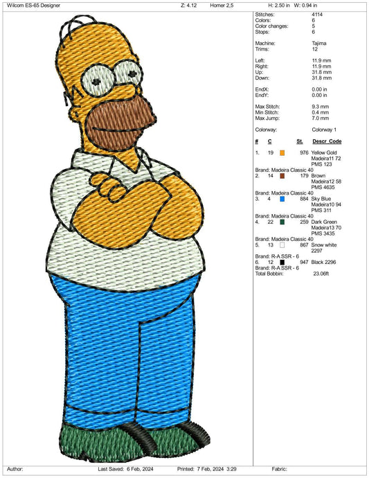 Archivos de diseño de bordado de Homero Simpson - 3 tamaños