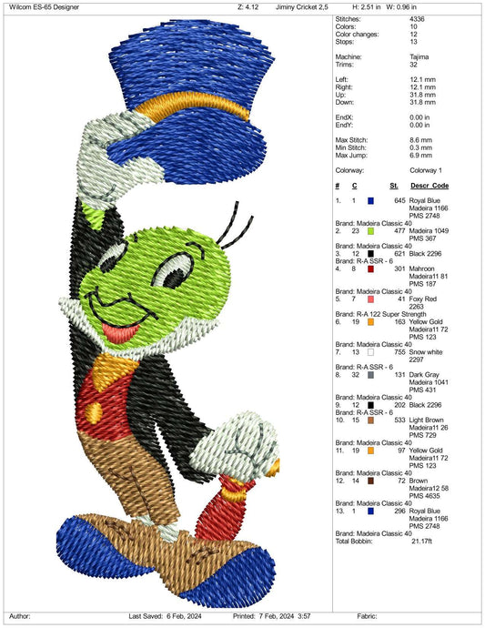 Archivos de diseño de bordado de Jimmy Cricket - 3 tamaños