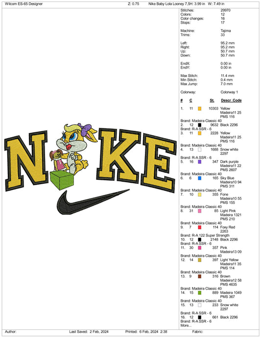 Archivos de diseño de bordado de Nike Chibi Lola Bunny (3 tamaños)