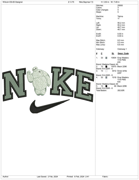 Archivos de diseño de bordado Nike Baymax - 3 tamaños
