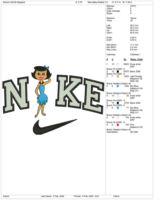 Archivos de diseño de bordado Nike Betty Rubble (3 tamaños)