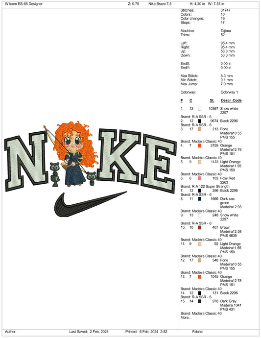 Archivos de diseño de bordado Nike Chibi Princesa Mérida - 3 tamaños
