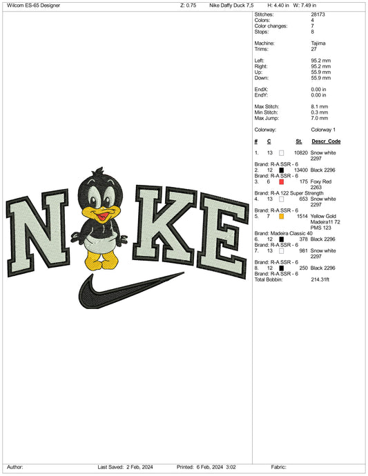 Archivos de diseño de bordado del Pato Lucas Chibi de Nike (3 tamaños)