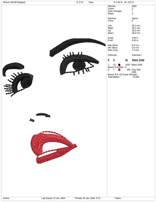 Hermosos archivos de diseño de bordado de rostros - 3 tamaños