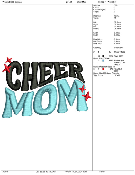 Archivos de diseño de bordado "Cheer Mom" - 3 tamaños