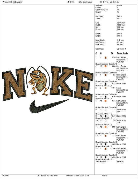 Archivos de diseño de bordado de Nike Cockroach (3 tamaños)